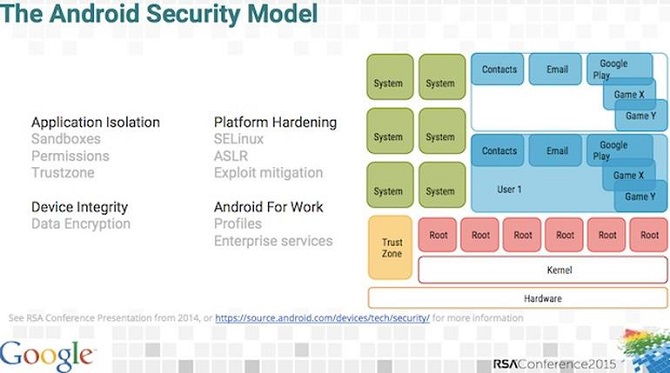 在本周二的RSA Conference 2015上,负责谷歌移动OS Android 安全的首席工程师Adrian Ludwig揭秘了Android的安全机制,并指出业内对 Android 安全的诟病有失偏颇。