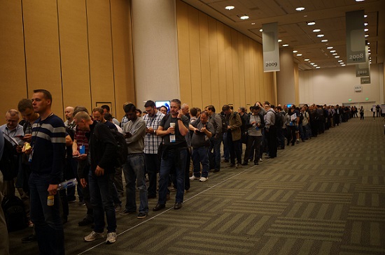 大会即将开始,Moscone Center内等待进场的参会者