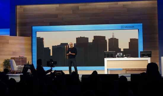 微软CEO Satya Nadella上台做开场介绍。