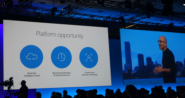 Satya说今天的Keynote的主题为——三个主要平台的变革。