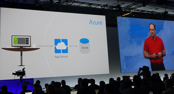 Scott Guthrie(微软云和企业负责人)上台:Azure目前在全世界19个地区布局,比Amazon还多。过去12个月,Azure有超过500个新功能上线,目前每月新增用户超过90000人。