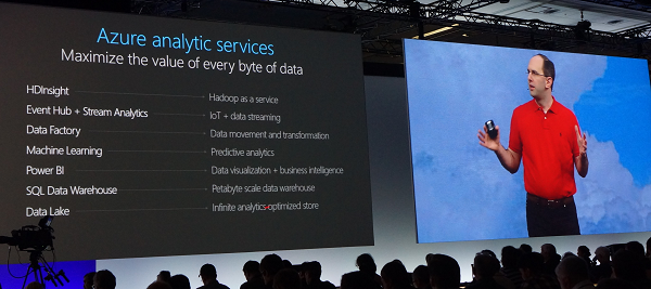 Scott Guthrie开始讨论Azure上的SQL数据库,目前每天有16万SQL数据库在Azure上创建,今天将发布两个新Azure功能:SQL Data Warehouse和SQL Data Lake。