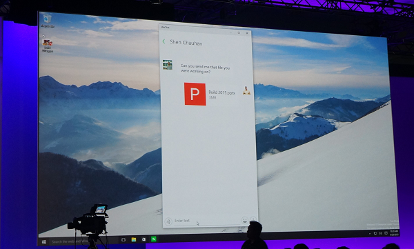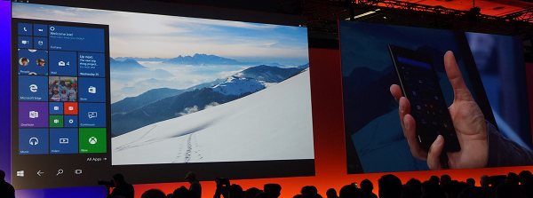 接下来展示的特性是Continuum——手机和桌面电脑操作无缝切换(Continuum是正式的名字)。Windows 10手机几乎可作为全功能的PC,不过这一功能需要新的硬件支持。