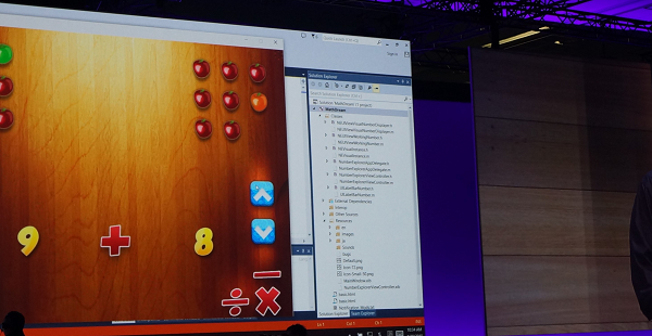 说起来简单,但这意味着如果应用中使用了Google API,就需要创建一个相应的微软替代版本,不单如此,这样的应用程序最终将有能力深度集成Cortana、Xbox Live、Holograms这些Windows平台特有的功能。现场展示中,Visual Studio可以直接打开Objective-C项目,并在Windows 10系统中调试运行(在IDE中,所有可能存在问题的地方将高亮显示)iOS应用,同时支持触摸和键鼠操作。