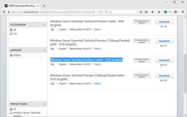 按照上月业内的传言,第二个Windows Server技术预览本于本月开放下载,昨日Twitter用户Johan Arwidmark爆出Windows Server 2016技术预览版 2 已开放下载。另外,以企业为重点的高新技术大会-微软Ignite大会于5月4日召开,微软高管在大会上透露System Center 2016技术预览版2于下周释放。