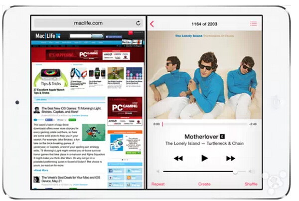 到目前为止,配备2GB内存的iPad只有去年已经发布了的iPadAir2平板电脑,未来的iPadPro自然也会搭载2GB内存。因此这两款平板有能力支持分屏多任务功能。