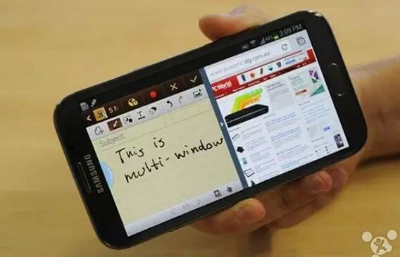 多窗口多任务拖拽操作。不熟悉三星产品的同学可能有点难以理解。假设你正在浏览一个网页,而同时你又正在使用另一个窗口与他人聊天。你可以将网页中的图片、文字等内容直接拖拽到另一个窗口之中,让分享更加便捷。或者你正在阅读一篇文章,右边是一个笔记应用,你可以直接将有用的知识点拖拽至笔记应用中。再比如,我在团购网中看中一个饭馆,我可以直接在网页或应用上拖拽一张招牌菜的图片到微信对话框,直接和吃货们分享。这样可以直接免去了,打开团购网站,保存图片,Home,打开微信,选择照片,发送这六个步骤了,是不是很方便?