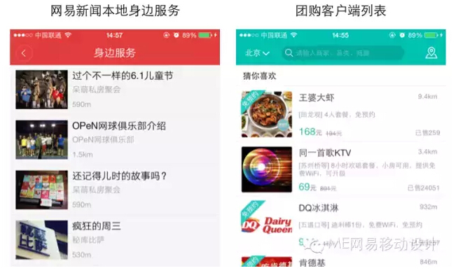 举个栗子:网易新闻的本地身边服务。产品的目标是中小商家产品推广的平台,从而实现利益共享。这一目标貌似和团购或是点评网站很像,如果照搬团购,直接把商品放出来,这就与新闻用户的使用场景不符。用户在新闻客户端主要的需求是浏览资讯,看到有价值的资讯,也许会产生购买行为。如果直接塞给用户商品,用户的购买欲望会很低。所以我们的产品、运营思路都是从资讯入手,通过人文关怀的资讯内容,推广商家的产品,如下图:
