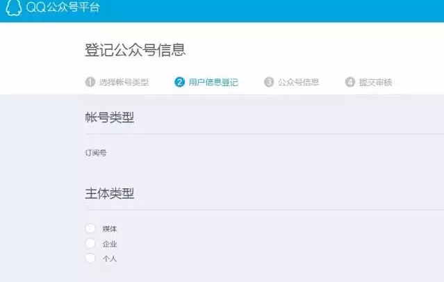 订阅号的主体则分为媒体、企业、个人三种形式,这一点上和微信公众平台完全相同。