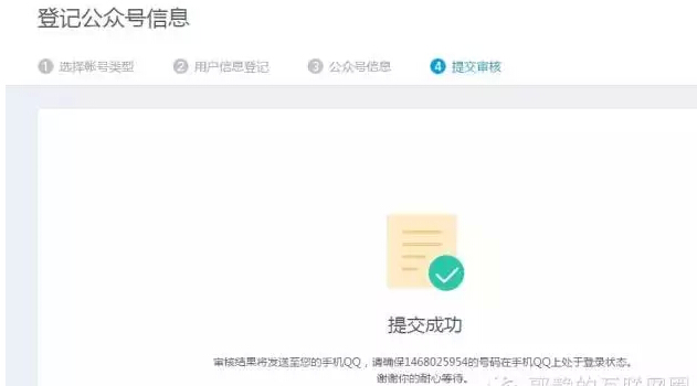 第三步是公众号信息,包括名称,ID、简介、头像等,和微信公众平台完全相同。信息填写完成后,点击确认信息,系统会提示“审核结果将发送至您的手机QQ”,接下来直接等待审核结果就行。