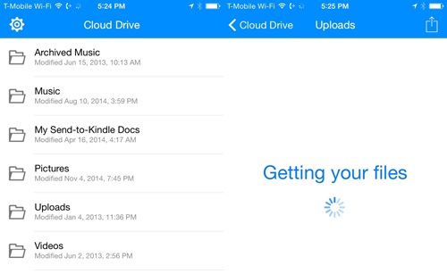 新推出的Cloud Drive应用侧重于效率,应用中的文件夹就和你在Cloud Drive云存储中设置的一样,进入文件夹后可以在手机上查看支持的格式文件,如文本、电子表格、幻灯片和照片。然而,文件只能浏览,不能修改。