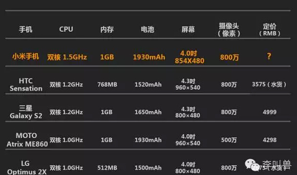 所以雷布斯在2011年产品发布会上,就开始巧妙地用这关键一张图来分解产品属性: