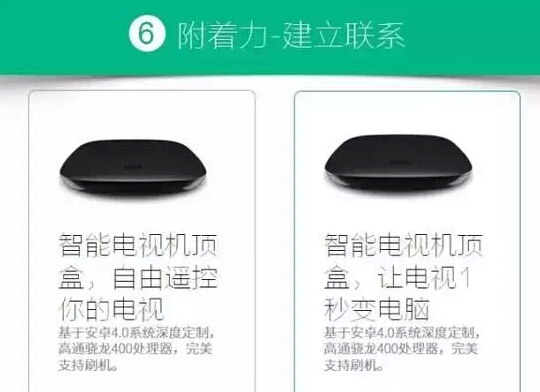 比如上图,假设你完全不了解电视机顶盒,它宣传“自由遥控”,你可能没什么概念;但是如果说“让电视1秒变电脑”,你就明白了—原来是可以像电脑一样自由操控电视啊!