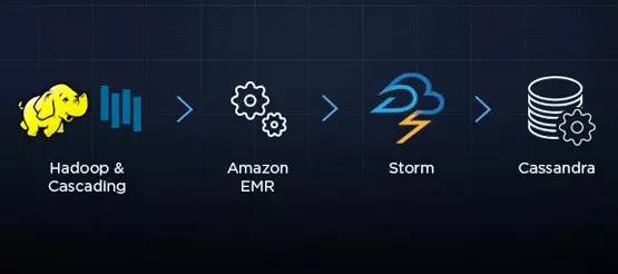 我们使用Cascading框架编写、Amazon EMR执行MapReduce程序。 Amazon EMR将我们存储到S3上的数据作为输入,处理完毕后,再将结果存入S3。我们通过运行在Storm上的调度topology来探测程序执行完毕,并将结果灌入Cassandra集群,这样结果就能用于亚秒级查询API。