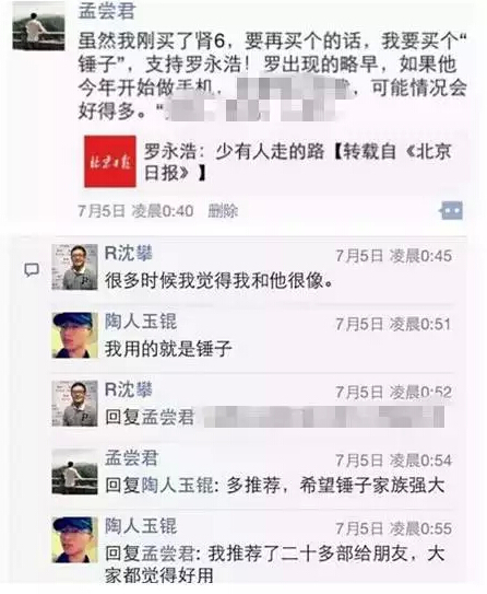 我们购买小米或者iphone,更多是个人身份的象征,我炫耀这个手机是因为手机带给我的虚荣。而锤子手机的用户,则是因为对罗永浩的崇拜和认可,并且大量向身边的人推荐,这可比传销还可怕!