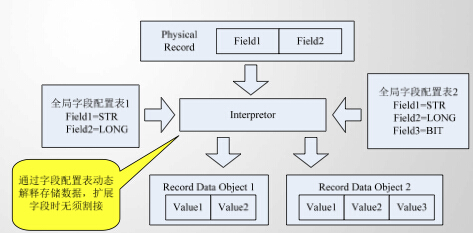 上图中可扩展设计中字段配置表的做法感觉略显繁琐,目前大部分NoSQL产品的schema free方式可能更易于维护。