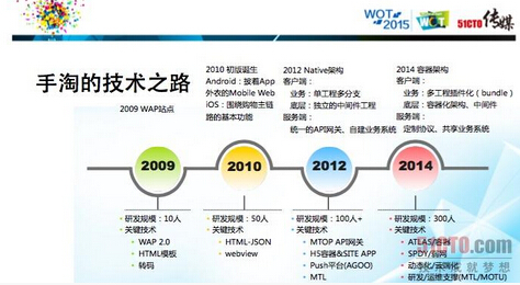 经过几年的技术变迁和积累,在2014年,手淘完成了自诞生以来最大规模的客户端重构,用容器架构来改变开发方式、工程结构、架构模型,及打包方式,使手淘巨型App时代的臃肿,回归田园App时代的敏捷。