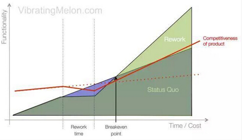 但事实上,即便重写的新代码可以实现旧代码的所有功能和需求,但是为产品带来的市场竞争力只有边际提升。因为重写用的新技术、新语言、新框架并没有给产品带来质的飞跃。