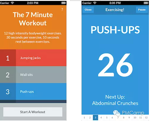 我想突破擅长的领域,寻找新创意。对一个整天守着电脑的开发者而言,没有比健身应用更棒的想法了。那时 7 Minute Workout(7 分钟健身)的概念已经在《纽约时报》和 Hacker News 上炒得火热,相当于为我提前准备了一大批潜在用户。