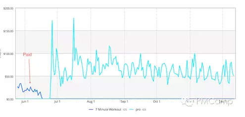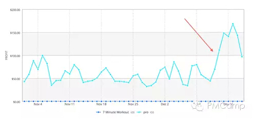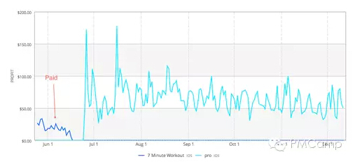 再次更新应用,主要是添加了更多 IAP 健身系列,包括特别版 7 Minute Workout 和普拉提版 7 Minute Workout。新的 IAP 选项对于先前的付费升级(日均收益 50-60 美元)几乎没太大影响,不过日均收益上升到了 70-80 美元。同样的下载数量,跟去年相比,总收益增加 40%。