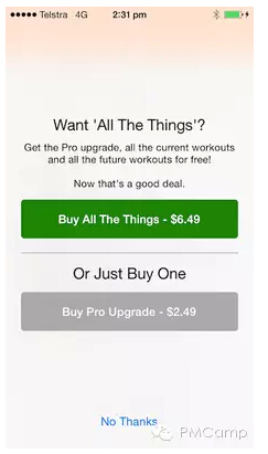 我对 IAP(应用内购买)是又爱又恨。不过就当时的形势来看,IAP 值得一试。说实话,IAP 已经被开发者滥用成灾了,儿童游戏往往是最大的灾区。很多人反馈说,希望应用中健身项目的时间和设定更灵活一些,我意识到:这正是推出付费升级的绝佳机会。很简单,就是让用户为额外的功能付费。
