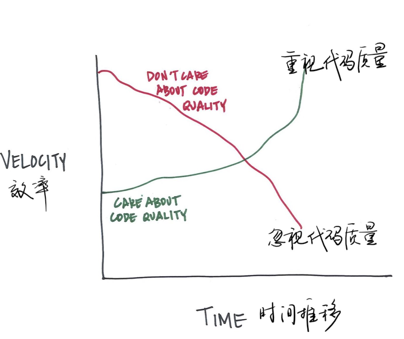 每部分代码应符合其对应的质量标准要——不同的代码行有不同的使用期、适用范围,它们的崩溃风险程度、修复崩溃和破损的费用各异。综上,不同代码行对长期迭代速度的影响迥异,强求所有代码行都遵从统一的质量标准并非最佳抉择。