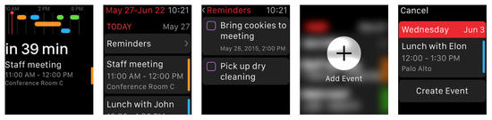 相反,Apple Watch版的Fantastical采取了一种简单的方法,即只需把iPhone应用缩小到Watch屏幕。Flexibits提供了更细致的服务,做出了一款集功能与美观为一体的App。小屏幕上的UX依旧很可爱。通过屏幕上的Force Touch技术你可以添加项目,滚动现存项目,这是一种很棒的感觉。