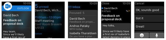 不同于谷歌购买的电邮App,事实上微软在获得团队之前不会枪毙产品。iOS上的Outlook显而易见是最好的电邮App之一,然而Accompli的收购致使这款App终结。Apple Watch版的Outlook支持所有我们喜爱的iOS App。它有自定义通知,定制邮件同时支持预编内容快速回复功能。