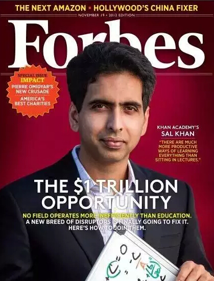2012年,可汗成功登上《福布斯》杂志封面。《福布斯》撰文称这是一个一万亿美元的商业机会,而当今市值最高的公司是苹果公司,也不过才7000亿美元。