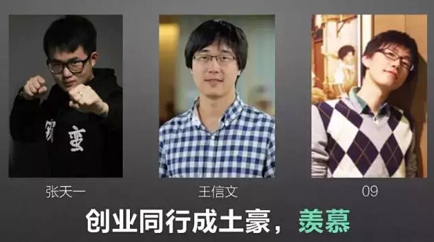 为什么会有这样的焦虑?先做一个表层分析。我筛选了3个很牛的人,第一个张天一,第二个王信文,第三个09,这三个人都是85后。其中我个人最推崇王信文是,他是刀塔传奇的创始人,据说公司的的月流水已经过两亿。张天一创办了伏牛堂,在业内也有很高的知名度。第三个09是游戏天才,玩DOTA的人应该都听过,几年前已经年薪过千万。