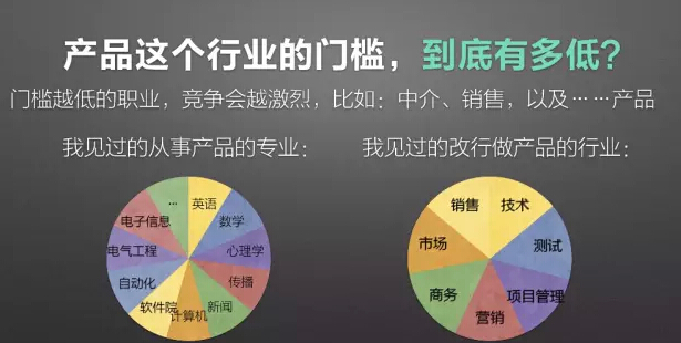还有一个行业焦虑的来源,是来自于产品的行业门槛,实在是惊人的低。所有的行业包括传统行业,进入门槛最低的就是中介、销售,以及……产品。这种行业有一个共性,就是只要想做,谁都可以。我见过的有从英语、数学等专业出来做产品的,有从测试和技术转来做产品的,越来越多的人涌入这个行业,加上这个行业技术门槛比较低,就导致大家压力变得空前巨大。