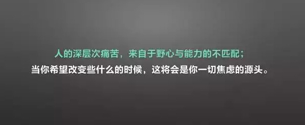 人的深层次痛苦来自于野心与能力的不匹配,其实这是你焦虑最源头的东西。这也是你进步的动力。