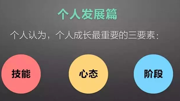 今天在场80后多,我就用圣斗士星矢举例子。星矢的成长来自于三个最重要的点:第一个是技能,他熟练掌握天马流星拳这项技能;第二是心态,他坚持追求目标百折不挠,无数次被打到半死,无数次爬起来;第三是阶段,他对自己的状态非常清楚,挑战是从白银打到黄金再到海王冥王,他虽然是跨级挑战,但对自己所处的阶段有一个很清晰的认知,如果漫画一开始就去挑战关底boss,一定不会有什么好结果的是不是?