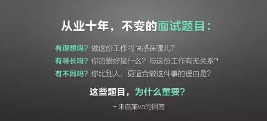 从业十年,我的面试题目基本没有太大变化。第一你有理想吗?第二你有特长吗?爱好是什么?第三个问题和别人比,你有不同吗?你比别人更适合做这样工作的优势是什么?