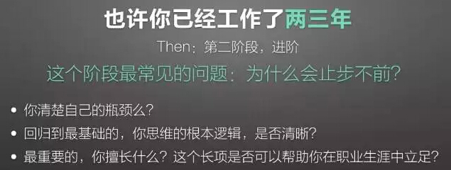 工作两三年的人,这个阶段最需要就是进阶。在这个阶段会有一种疲惫感,觉得我为什么感觉到好像没有进步?我一直在止步不前,为什么一直都是这样样子?