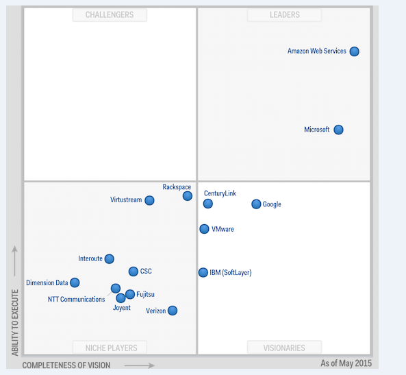 我们先来看两个数据, 第一个是据Gartner 2015 IaaS魔力象限报告(如下图),AWS仍然保持在领导者象限的顶部,并且其营收比第二位到第五位跟随者营收总和的5倍还多; 第二个是今年4月亚马逊财报首度公开其业绩,营收15.6亿美元,同比增长49%。