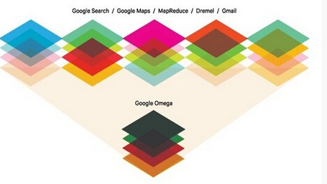 图注:由于使用了伯格和后续的Omega系统,谷歌可以将所有的东西放在一个服务器群组上运行,摆脱在不同的服务器群组上运行各自的软件系统。
