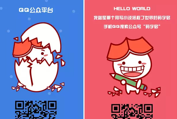 主色调特地选择了和QQ公众平台相同的蓝色,让大家第一印象产生与QQ公众平台的联想。在“接生篇”海报中,没有做任何的品牌露出,以趣味吸引关注为主。