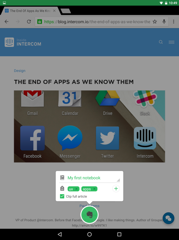 这到底是什么意思呢?Paul Adams曾在“Inside Intercom”博客的一篇文章中描述了他对应用的愿景——在某些具体的情境下,应用仍将是互动的主要载体。但越来越常见到一些应用的功能界面在其他应用上呈现,虽然听起来很抽象,但我们已经在当今的移动操作系统中看到了实实在在的改变。