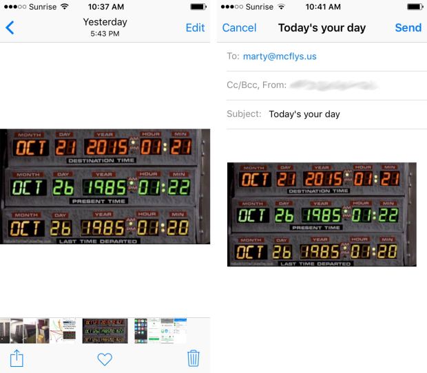 相片应用中的邮件窗口(iOS)
