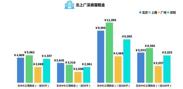 再来说说房租吧,上海市今年的房价上涨幅度较高,市中心三居室房租在11098元,是广州的两倍多,上海市中心一居室租金可在广州市中心租一套三居室尚且有余。