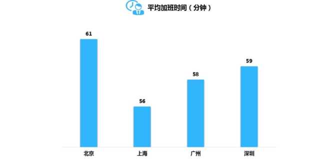 无论能不能改变世界,初入职场的年轻人难免披星戴月地奔波,被嘲“加班狗”也乐在其中。以晚7点后计算,四个城市平均加班时间差异不大,都在一个小时左右,北京时间最长为61分钟。