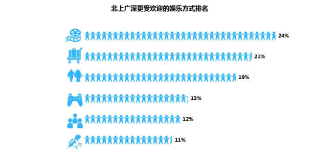 在众多娱乐方式中,一线城市的年轻人更喜欢看电影、旅游、逛街、打游戏,这些都是较传统、消费较少的娱乐方式。