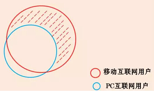 接入互联网的用户,除了原有PC用户,还有原生移动用户。这些原生移动用户,没有用过PC上网,直接的、完全的使用智能手机。两者关系如下图: