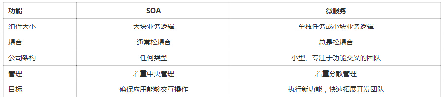 微服务与SOA有很多相同之处。两者都属于典型的、包含松耦合分布式组件的系统结构。但是两种架构背后的意图是不同的:SOA尝试将应用集成,一般采用中央管理模式来确保各应用能够交互运作。微服务尝试部署新功能,快速有效地扩展开发团队。它着重于分散管理、代码再利用与自动化执行。