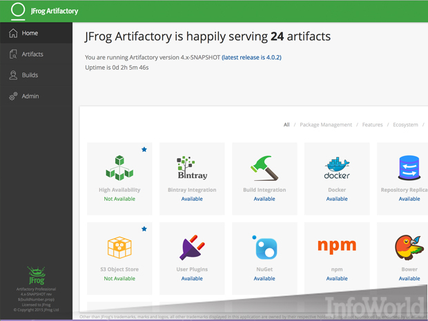 图:Artifactory支持Docker、npm、Bower和NuGet等多种包格式