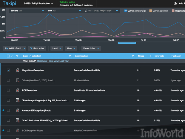 图:Takipi能够自动监测JVM语言代码中的错误,避免了开发人员检查日志的麻烦