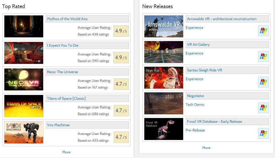 事实上,上面的两个疑问是笔者前几天刚刚问过虚拟现实业内人士的问题。在VR大热的今天,许多公司都将VR的关注焦点投放在硬件设备上,而大多数人也都是从接触硬件开始了解这个行业,也就直接导致VR应用开发的盛行主要面临这样两个问题:设备要么昂贵要么糙,并且还不普及;又没有一个像苹果App Store那样赚钱的生态系统平台。目前在VR应用商店方面,Oculus VR Share、VRapps、WEARVR等已较为成熟,但距离App Store的量级,依然任重而道远。