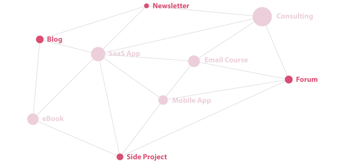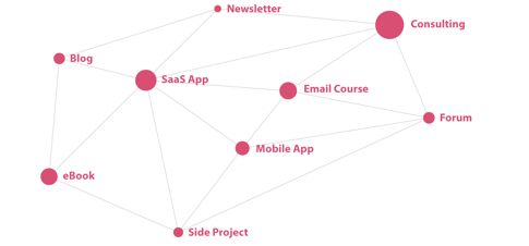 本文作者 Sacha Greif 是 Discover Meteor 公司的联合创始人。在文中提出了产品网络的概念:你做了一堆用户群体相同的线上产品,有的赚钱,有的不赚钱;不赚钱的产品可以为赚钱的产品服务,如带来更多付费用户。