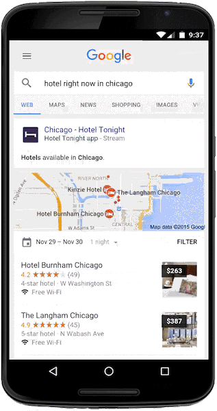 而应用检索(app indexing)是对应用链接的有益补充。谷歌和苹果应用已为第三方内容供应商提供诸多方式使以前无法获取的内容显示在搜索查询结果里。这实在是太妙了,好像真的能彻底解决内容传送和披露的问题。用户搜索什么东西,内容就会显示在搜索结果里,点击链接即能打开相应的应用。